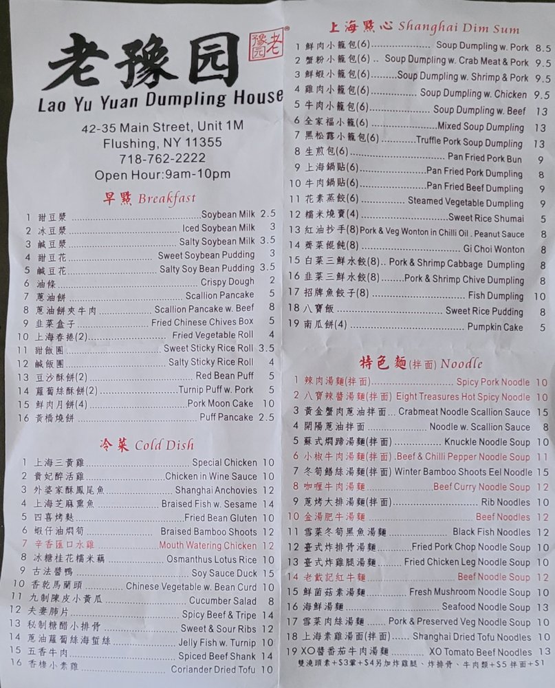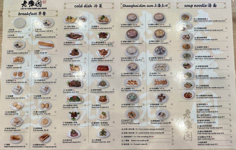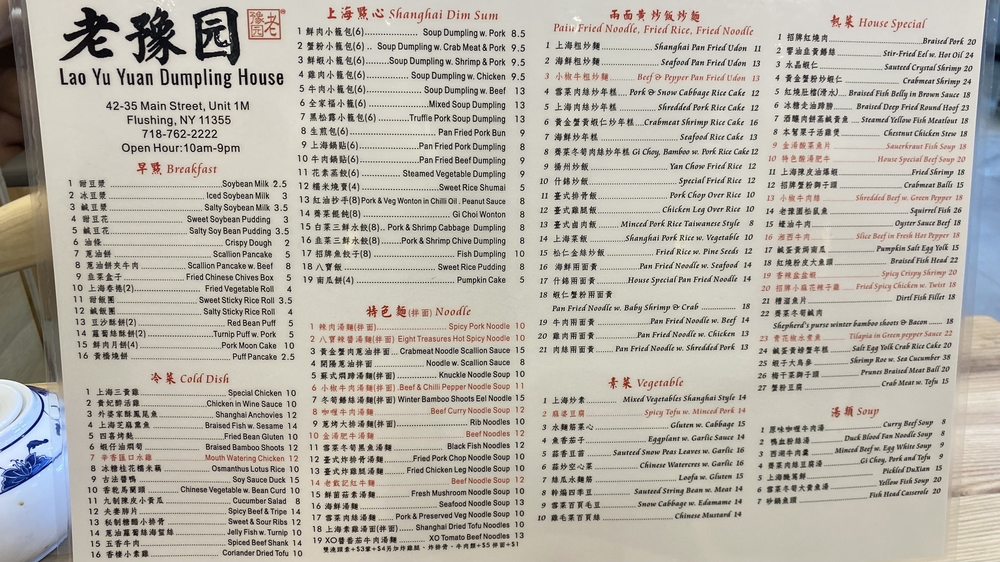 The menu also extends beyond dim sum, with options like Special Chicken and Osmanthus Lotus Rice showcasing the restaurant's diverse offerings. Whether you're a fan of traditional breakfast dishes like Scallion Pancakes or looking to indulge in a bowl of noodles, Lao Yu Yuan Dumpling House has something for everyone. Don't miss out on their Happy Hour Specials and alcoholic beverages to elevate your dining experience. Make sure to stop by this Asian and women-owned establishment for a truly memorable meal.